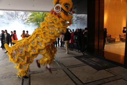 The whole YABO staff witness this joyous occasion,and the dancing lion leave together with cheers