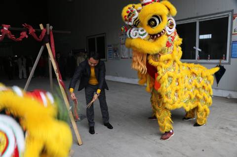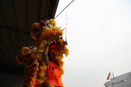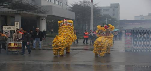 Dancing lion for New Year Celebration GuangDong Yabo furniture industries co., LTD start working