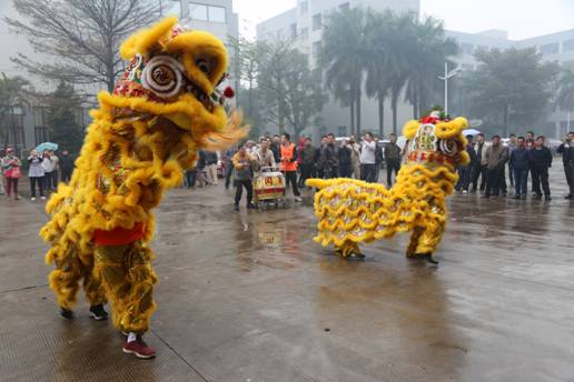 At 9AM,with the Drizzling rain,firecracker exploded and deafening sound of gongs and drums,YABO company is full of happiness and smile,one pair of lovely and honest dancing lion come to us,Sometimes majestic-looking,Flexible and interesting,and sometimes Courtesy, kindness and cute,rising,stand,stir,Coagulate,scratch,greeting,salute,leap,staring,sopor,fetch and so on.Dancing lion bring the enjoyment and blessing of New Year.